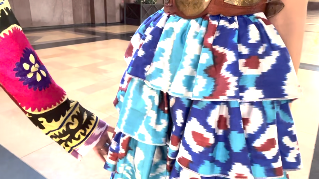 The suzanis (textiles) are turned into skirts, dresses, puffer vests and even shoes, with history behind every piece.