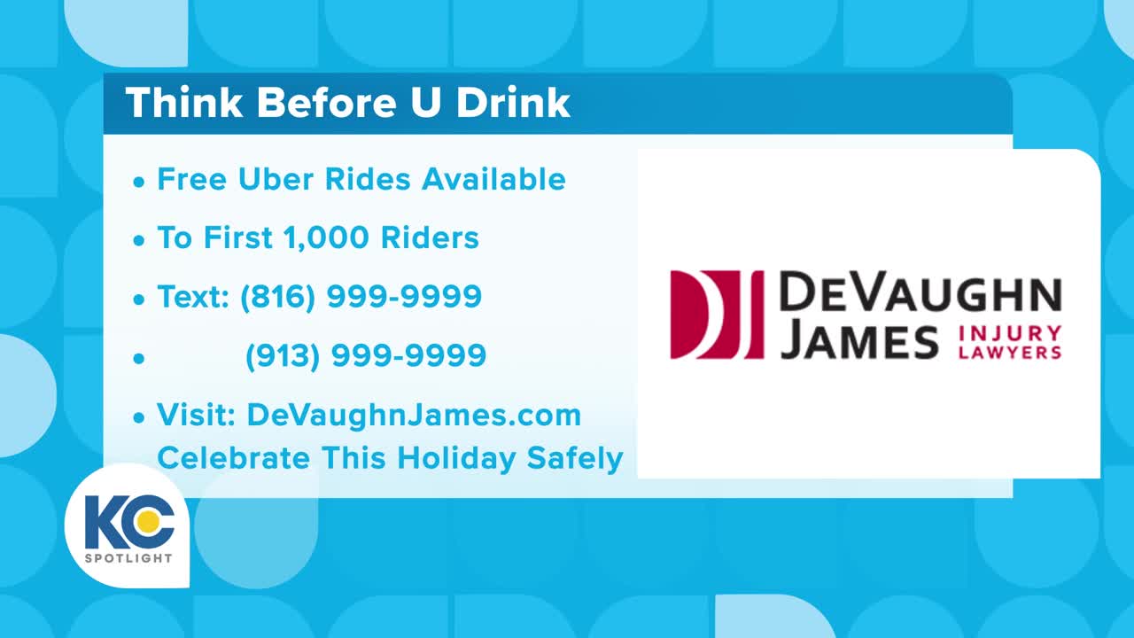 KANSAS CITY, Mo. — Before you make a mistake you can't take back, Think Before U Drink. DeVaughn James Injury Lawyers are giving a ride share code for NYE 2025. The firm highly recommends people only drive when sober.