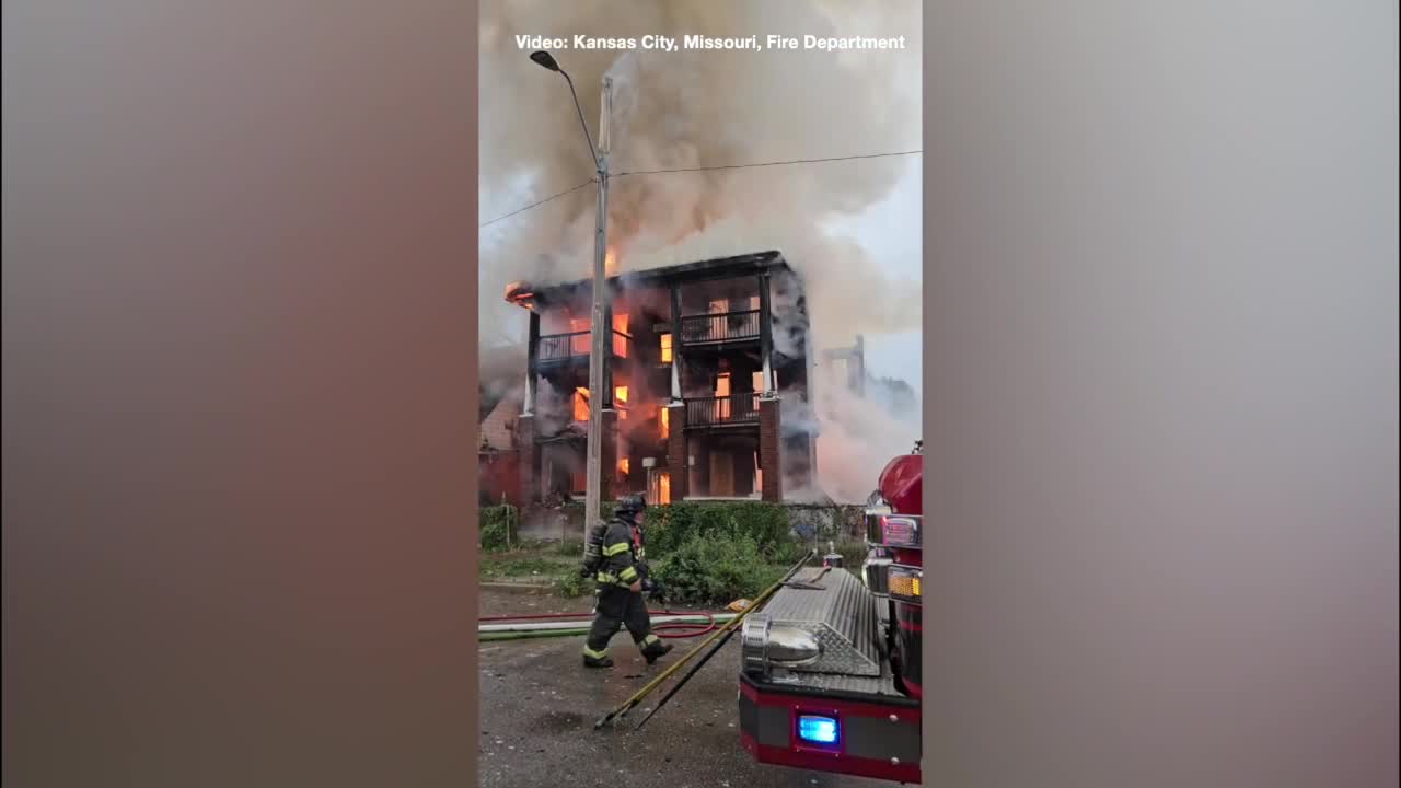 KANSAS CITY, Mo. — Several Kansas City, Missouri, fire crews battled a 2-alarm fire at an apartment building Friday morning.