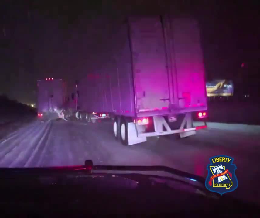 KANSAS CITY, Mo. — Police in Liberty have released patrol car dash cam video showing a tractor-trailer sliding on icy conditions late Friday, Jan. 16, 2026.