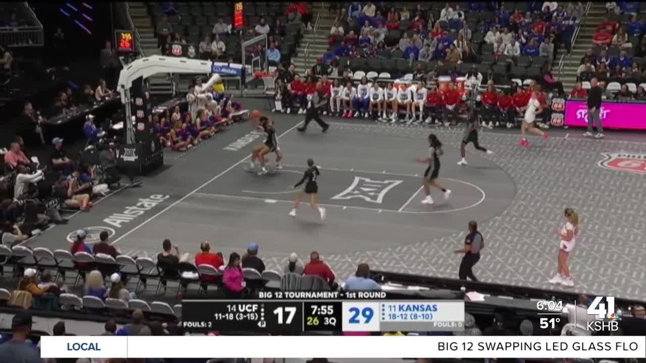 KANSAS CITY, Mo. — The Big 12 announced late Thursday night that they would be swapping out the LED glass floor with a normal hardwood for the rest of the Men's Basketball Tournament at the T-Mobile Center.
