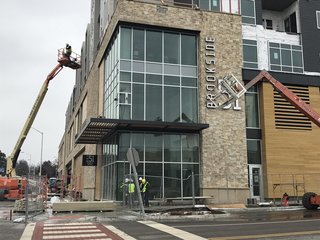 Brookside 51 is a new apartment building with a parking garage. The building will also house a new Whole Foods.