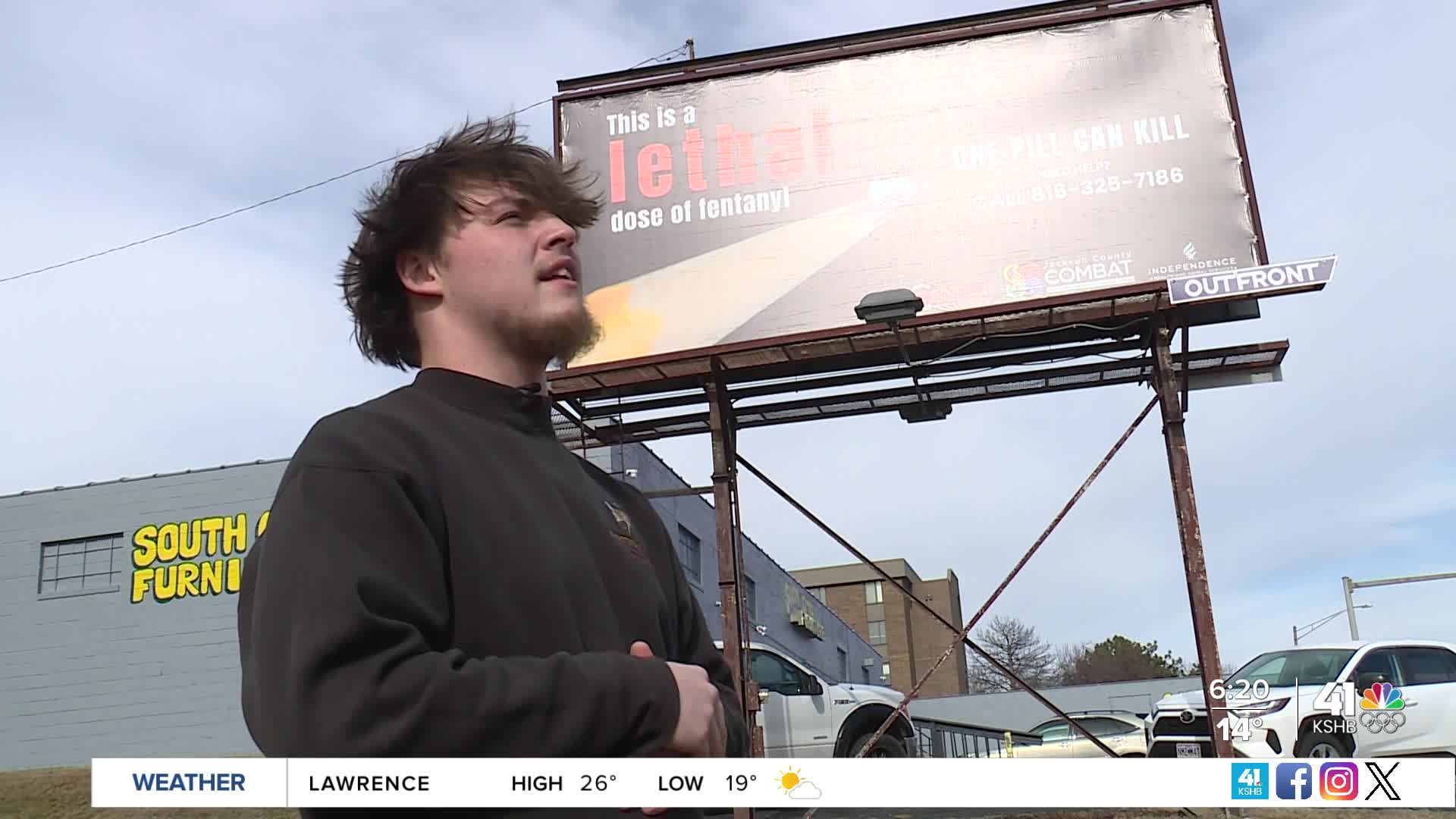 Etzenhouser designed a billboard that depicts a small amount of fentanyl on the tip of a sharpened pencil, hoping people will understand the drug’s lethality. It can be seen on the left side of North Noland Road between Truman Road and U.S. 24.
