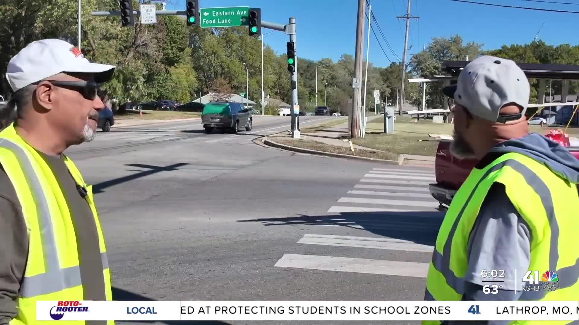 KANSAS CITY, Mo. — A memorial at the intersection of Longview Road and Food Lane serves as a reminder that last week, a nine-year-old girl died there. Two grandparents stepped up to make sure that doesn’t happen again.