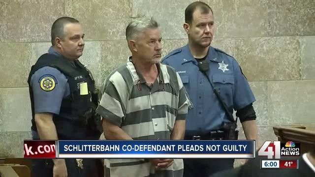 Schlitterbahn defendant John Schooley, accused in connection with the death of a 10-year-old boy, pleaded not guilty to murder and other charges in Wyandotte County Court.