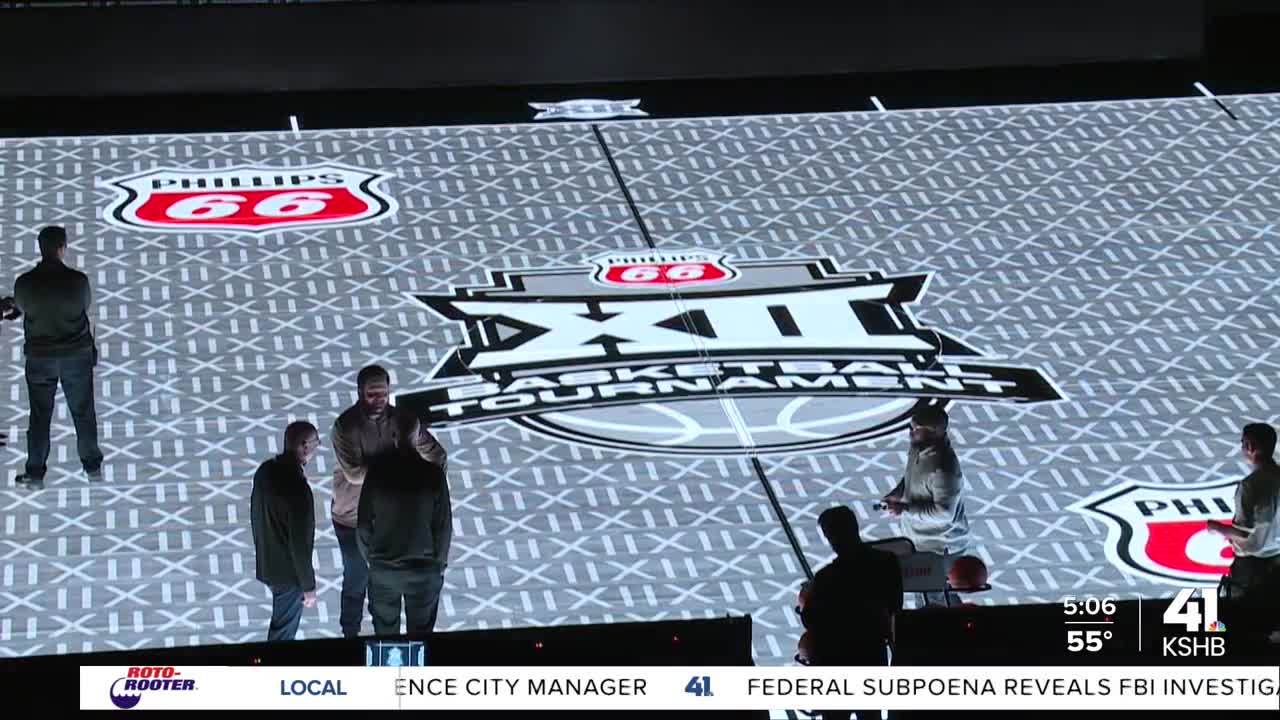 KANSAS CITY, Mo. — Big 12 Commissioner Brett Yormark appeared on "The Pat McAfee Show" on Friday morning, talking more about the change from an LED glass court to a traditional hardwood court at the Big 12 Men's Basketball Tournament.
