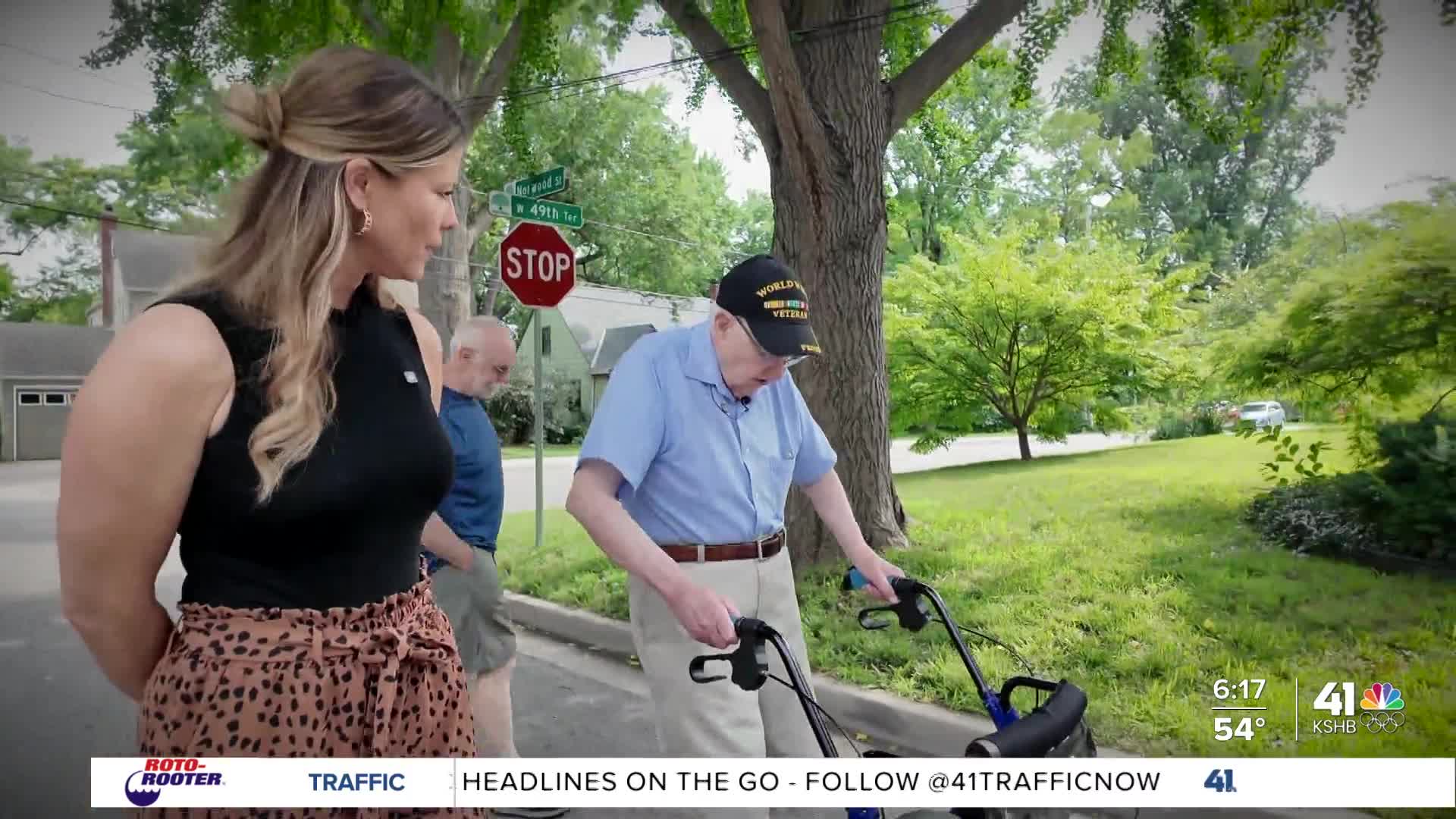 With help from his walker and a family member, Ken Tebow makes the walk up and down his Westwood, Kansas, street almost every day.
