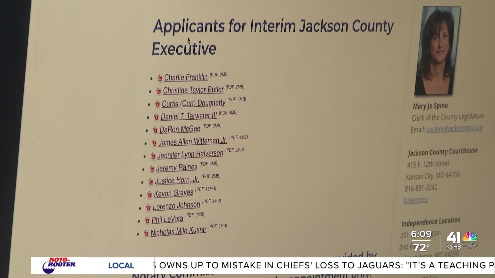 Members of the Jackson County Legislature will publicly interview 13 eligible applicants for the County Executive job Monday.