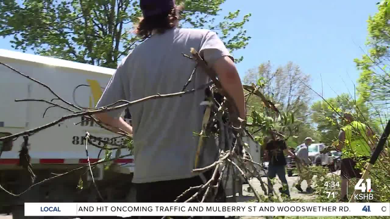 Church members helped all across town, including hauling trees from neighbor Jenna Schwarting's yard.