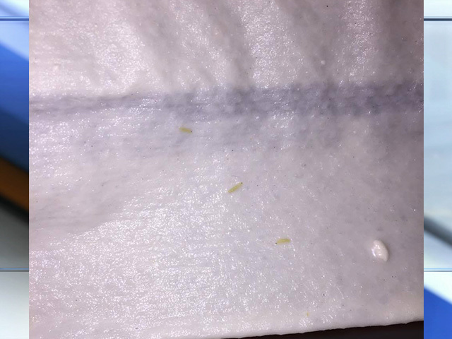 "Two ounces down I noticed the worms and I was like oh. That's great," she said. "Took it from his mouth, went and put a napkin over the faucet and we poured it down the drain and we saw the maggots on it."