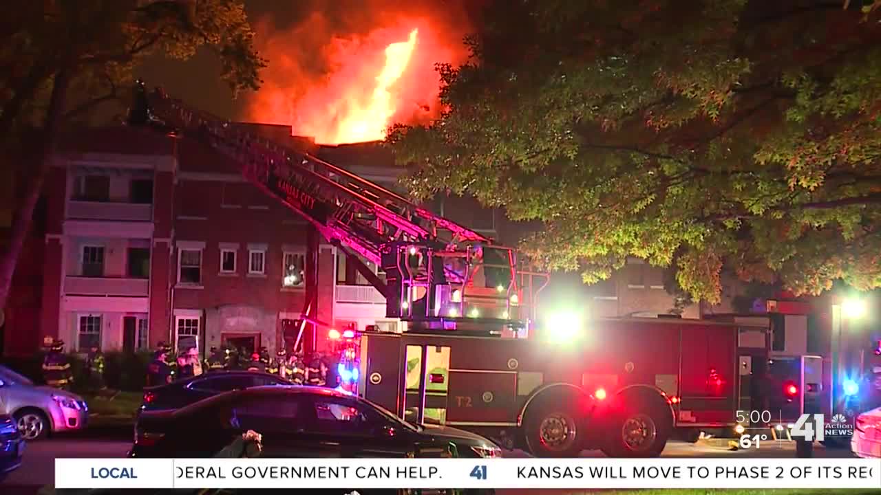 KANSAS CITY, Mo. — The Kansas City, Missouri, Fire Department responded to a large fire at a vacant, historic building on Knickerbocker Place overnight.