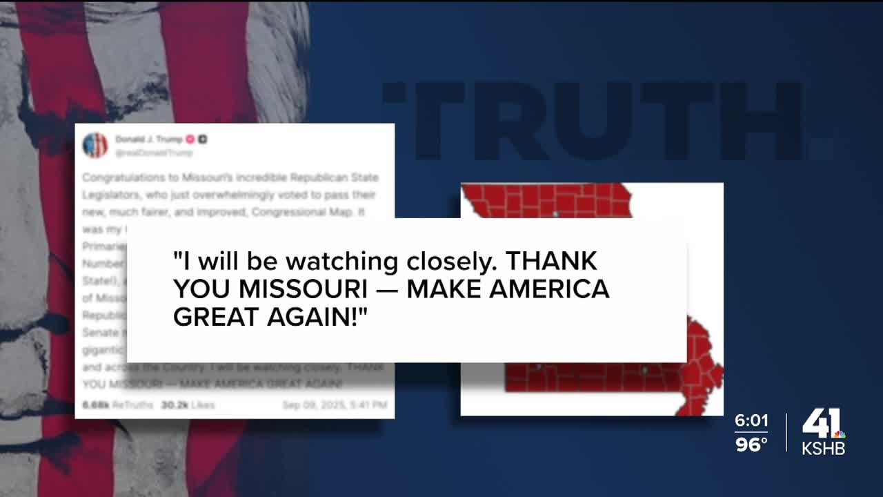 President Donald Trump praised Missouri lawmakers for their successful effort to redraw congressional districts in the state.