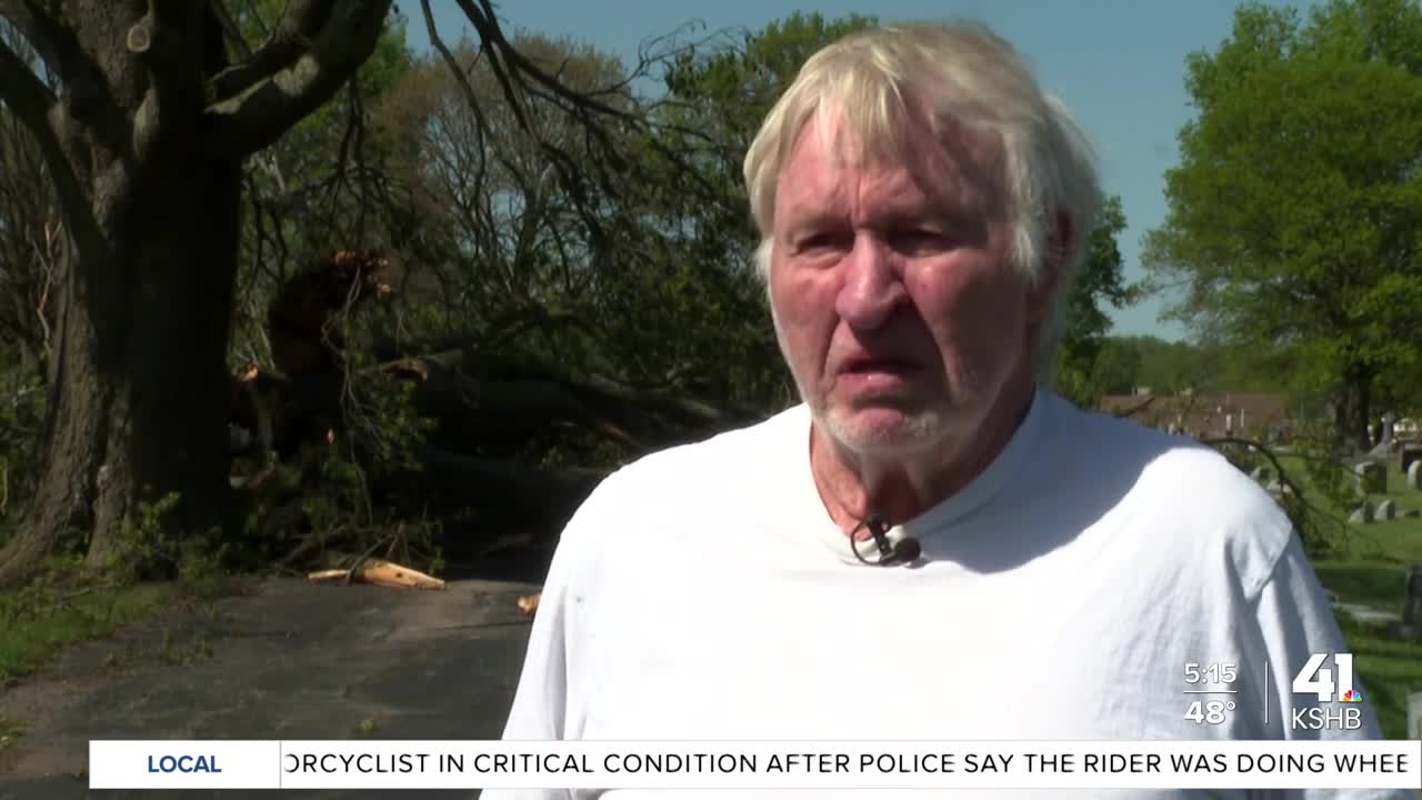 Elmer Larkey, president of the Belton Cemetery Association, took KSHB 41 Cass County reporter Ryan Gamboa to see the damage.