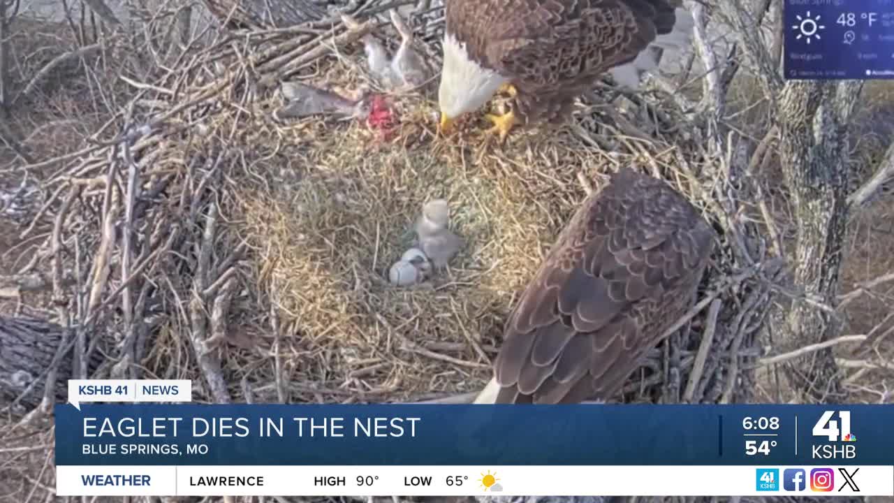 Unfortunately, one of the eaglets appears to have died, leaving two in the nest. This is common for the animal's life cycle, according to the Missouri Department of Conservation, and efforts to survive, which is why they lay more than one egg.