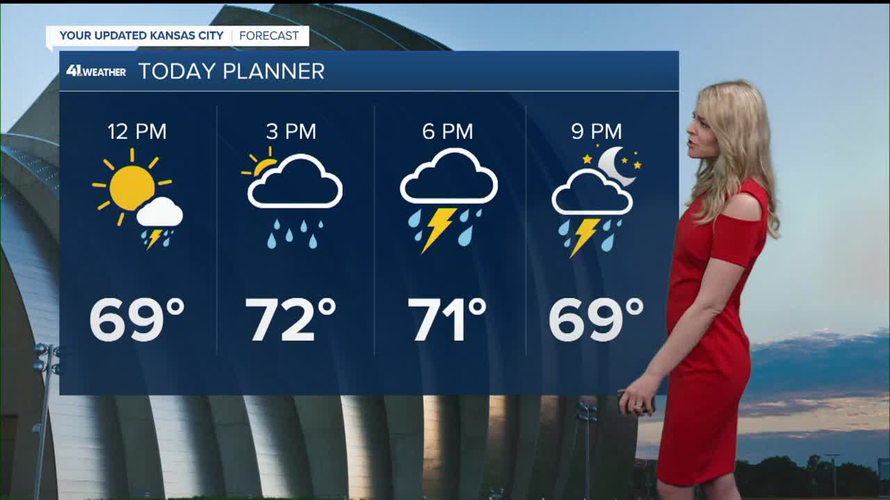 KSHB 41 meteorologist Lauren Rainson reports the severe threat is a Level 2 out of 5. Damaging winds and flash flooding are the top concerns, but tornadoes can't be entirely ruled out.