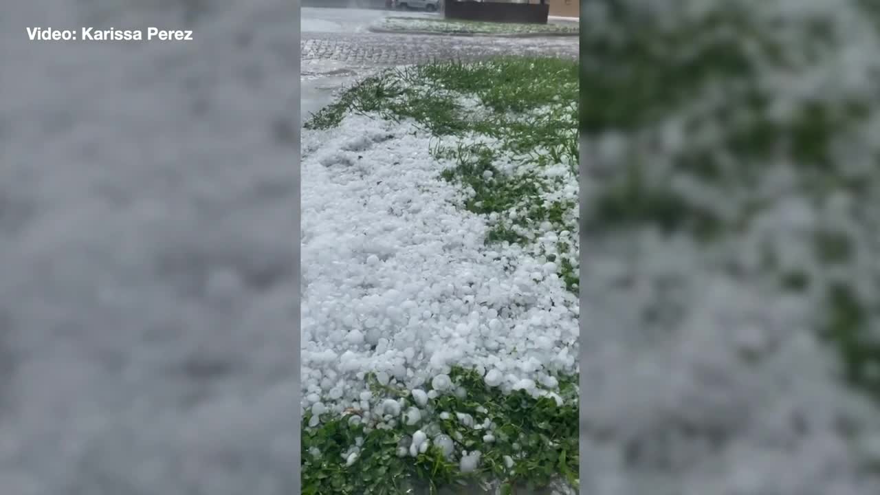 KSHB 41 Miami County reporter Ryan Gamboa shared an image of nearly golf ball-sized hail just before 5 p.m. in Paola.