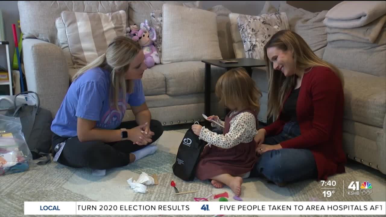 Hannah Colvin, a parent educator with the Lee's Summit R7 School District's Parents as Teachers program, visits the O'Leary family monthly to support their daughter Summer's development.
