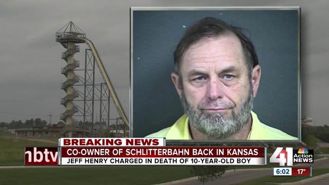 Jeff Henry, the co-owner of Schlitterbahn Waterpark, is now in Wyandotte County to face charges in connection with the 2016 death of Caleb Schwab.