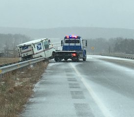 Further west, the Douglas County, Kan. Sheriff's office responded to several crashes, one involving a sheriff's department vehicle. Another incident involved a United States Postal Service truck. No series injuries were reported.