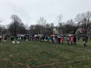 The skies opened up right before the start of the Hyde Park Spring Frolic and Egg Hunt.