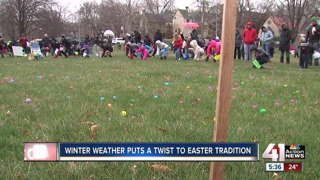 KANSAS CITY, Mo. -- The messy weather gave a twist to an Easter tradition.