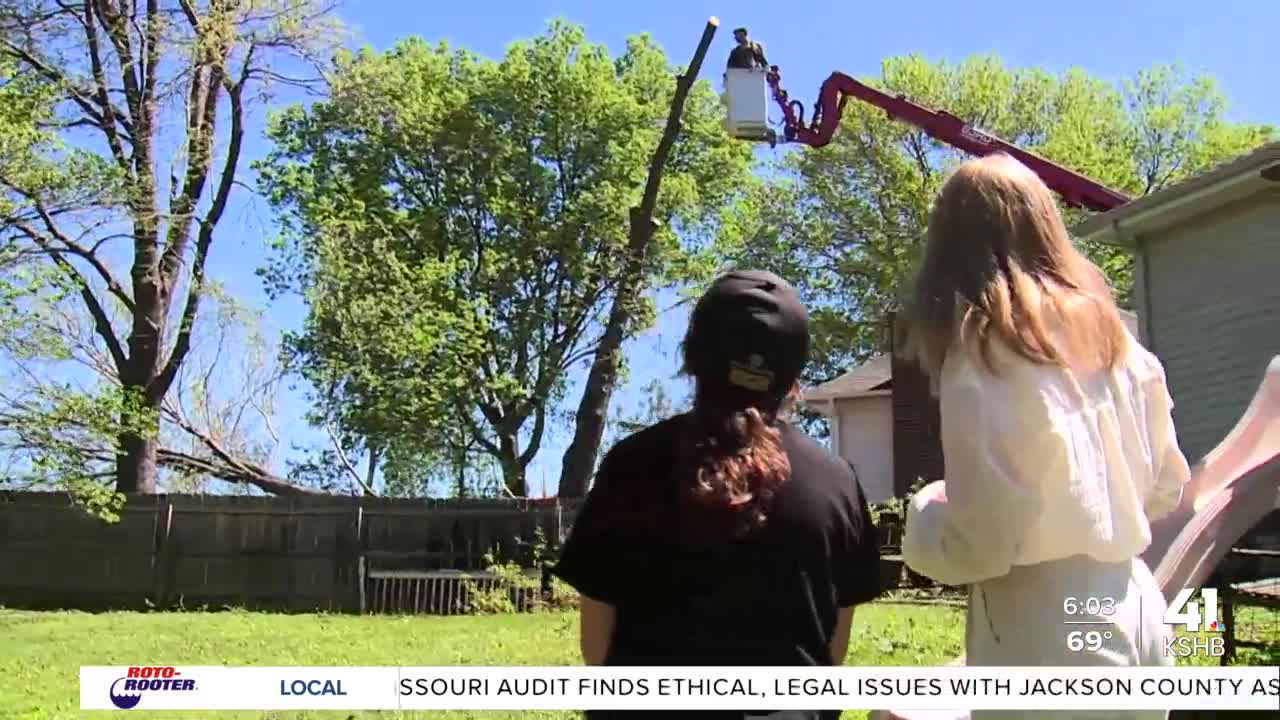 Kearney, Missouri, residents cleaned up debris Friday after Thursday night's storm caused damage to trees and fences across the southeast part of town.