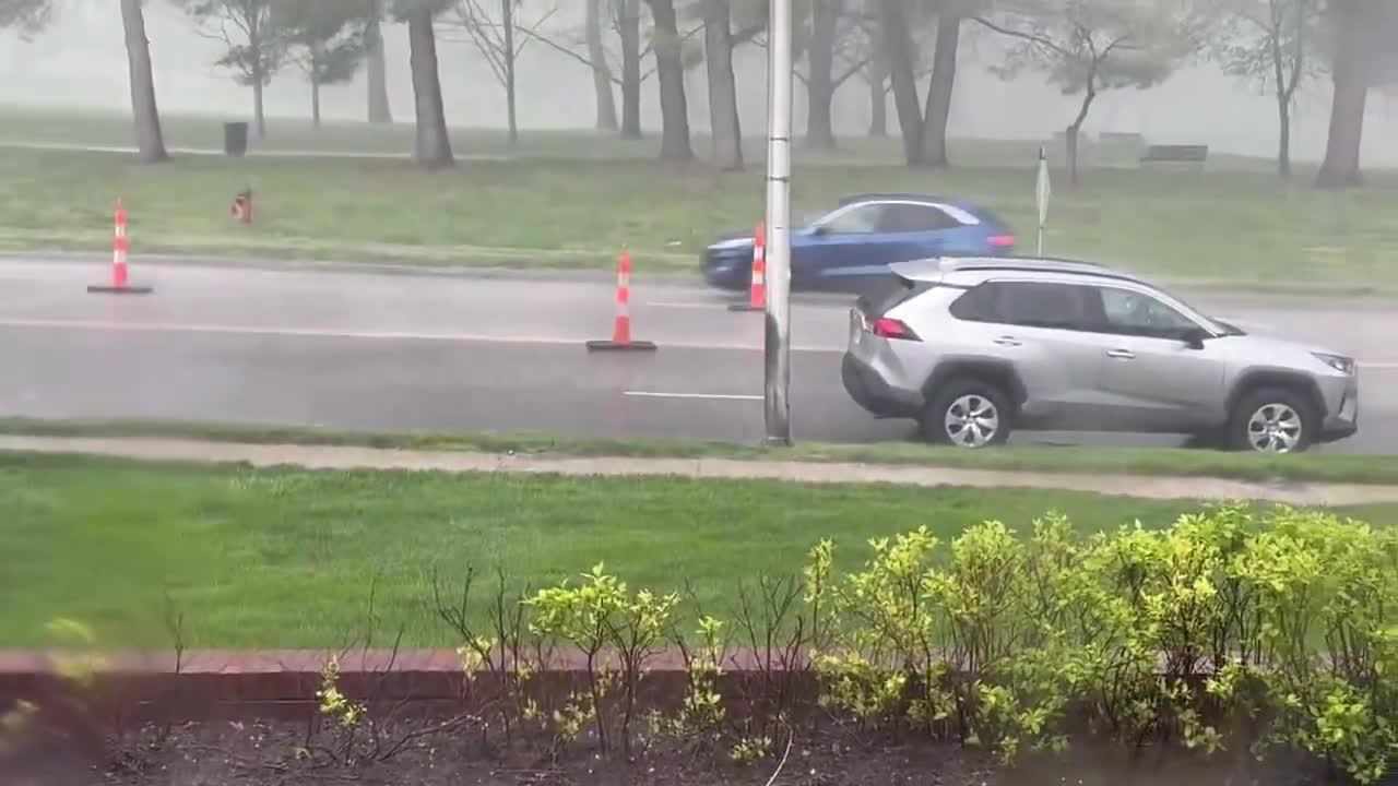 5:03 p.m. | Pea-sized hail and heavy rain are falling near the Country Club Plaza in Kansas City, Missouri, according to KSHB 41's Jeff Penner.