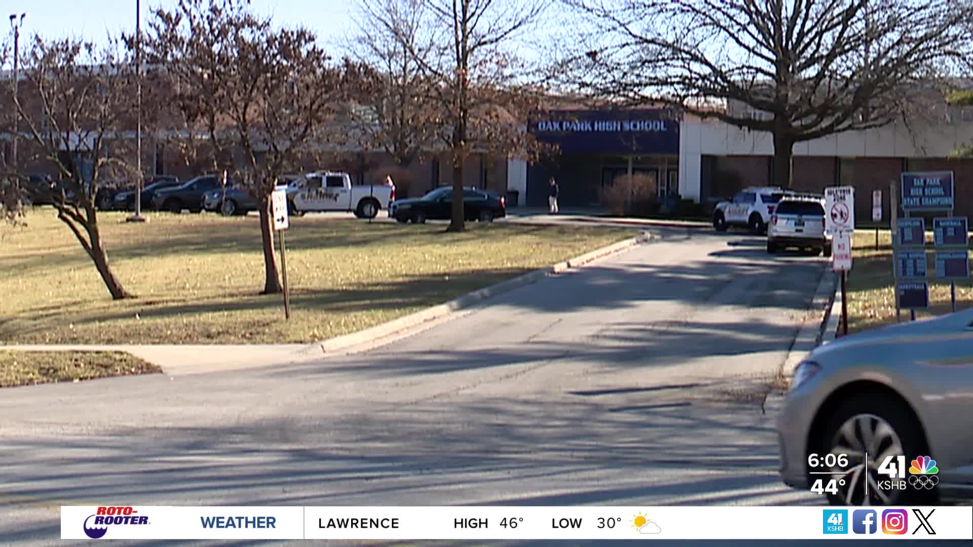 Video and photos provided to KSHB 41 News showed students gathering outside Oak Park High School on Friday, demonstrating in connection with allegations involving a former administrator.