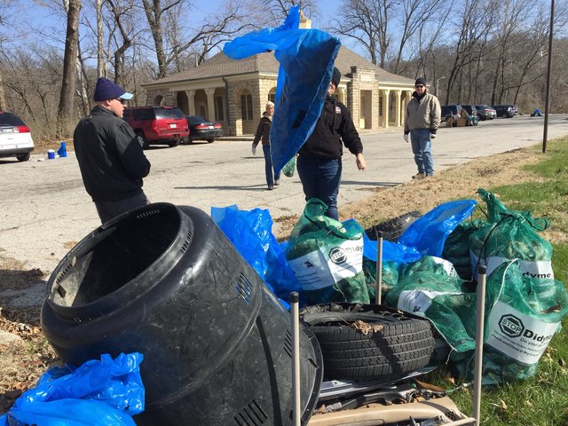 Before eleven Saturday morning Richmond says volunteers had collected 400 tires, a wicker table, four toilets, cutouts from a residential santa display, and more than 1,000 trash bags with various litter.