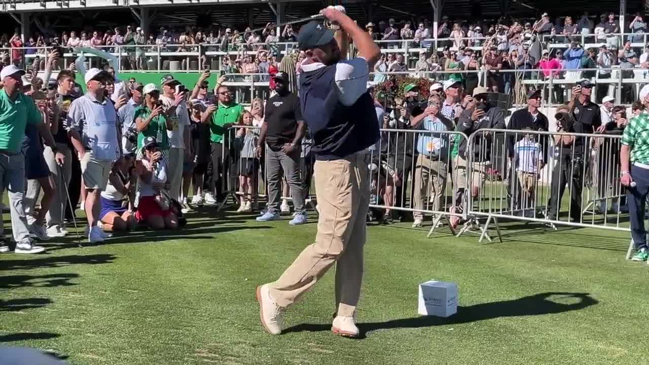In the 2026 WM Phoenix Open Annexus Pro-Am, Kelce stepped to the tee at the 16th hole and lofted the ball just a few feet away from the pin.