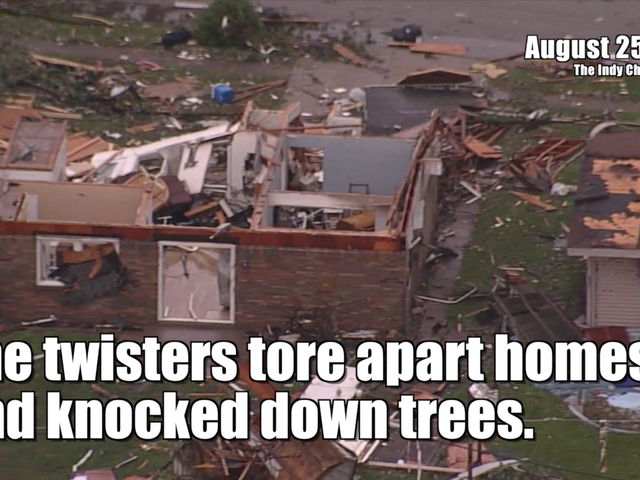 One confirmed tornado in Kokomo, Indiana, due north of Indianapolis, destroyed a Starbucks, knocking all its walls to the ground.
