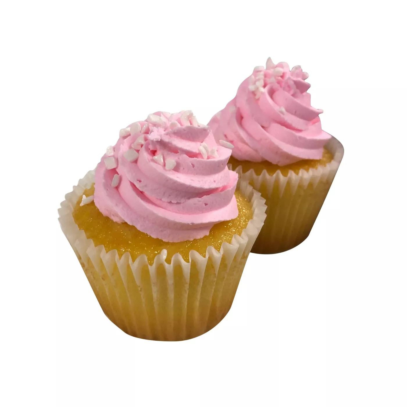 Inside each fluffy, vanilla cupcake is a buttercream icing filling, because what cupcake is complete without some buttercream? Finally, resting on top of the cake dome is a swirl of rosé pink frosting with some delicate sprinkles to set off the perfect decorations.