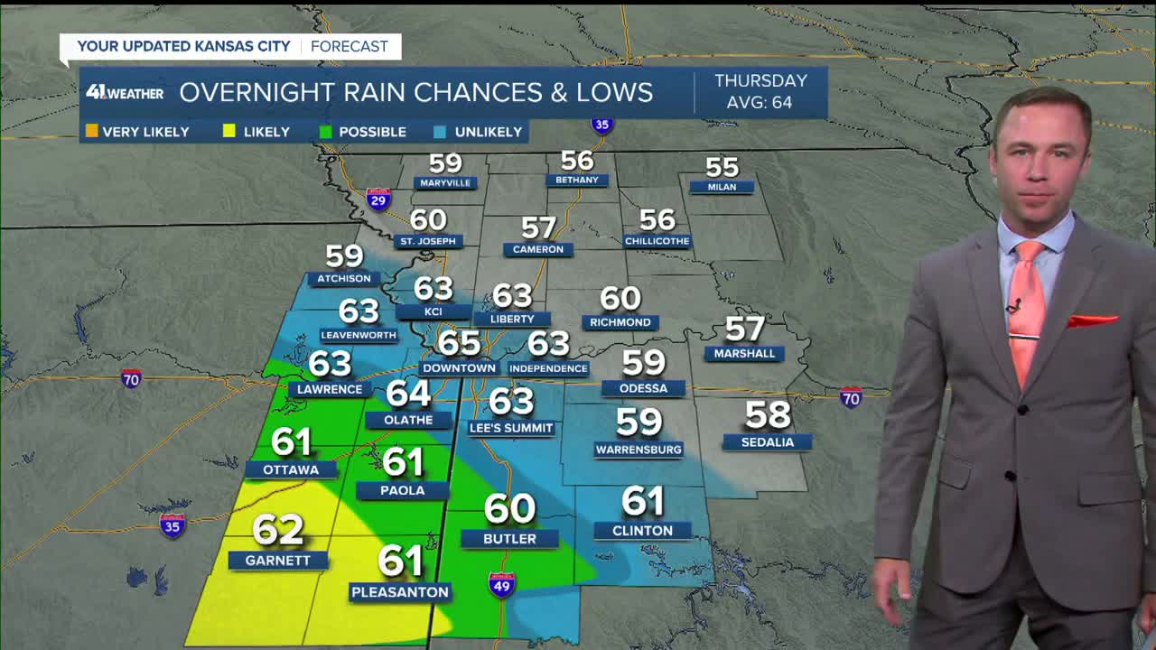 Thursday: Mostly cloudy with a slight chance of showers, mainly during the morning. Heavier rain is likely southwest of KC.