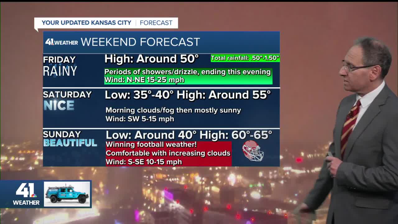 Sunday: Chance of morning fog then winning weather for Chiefs football. Mostly sunny and comfortable.
