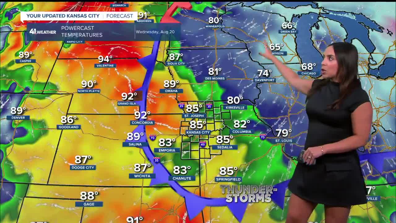 - A cold front moves through Tuesday night-Wednesday with drier, slightly cooler air behind it