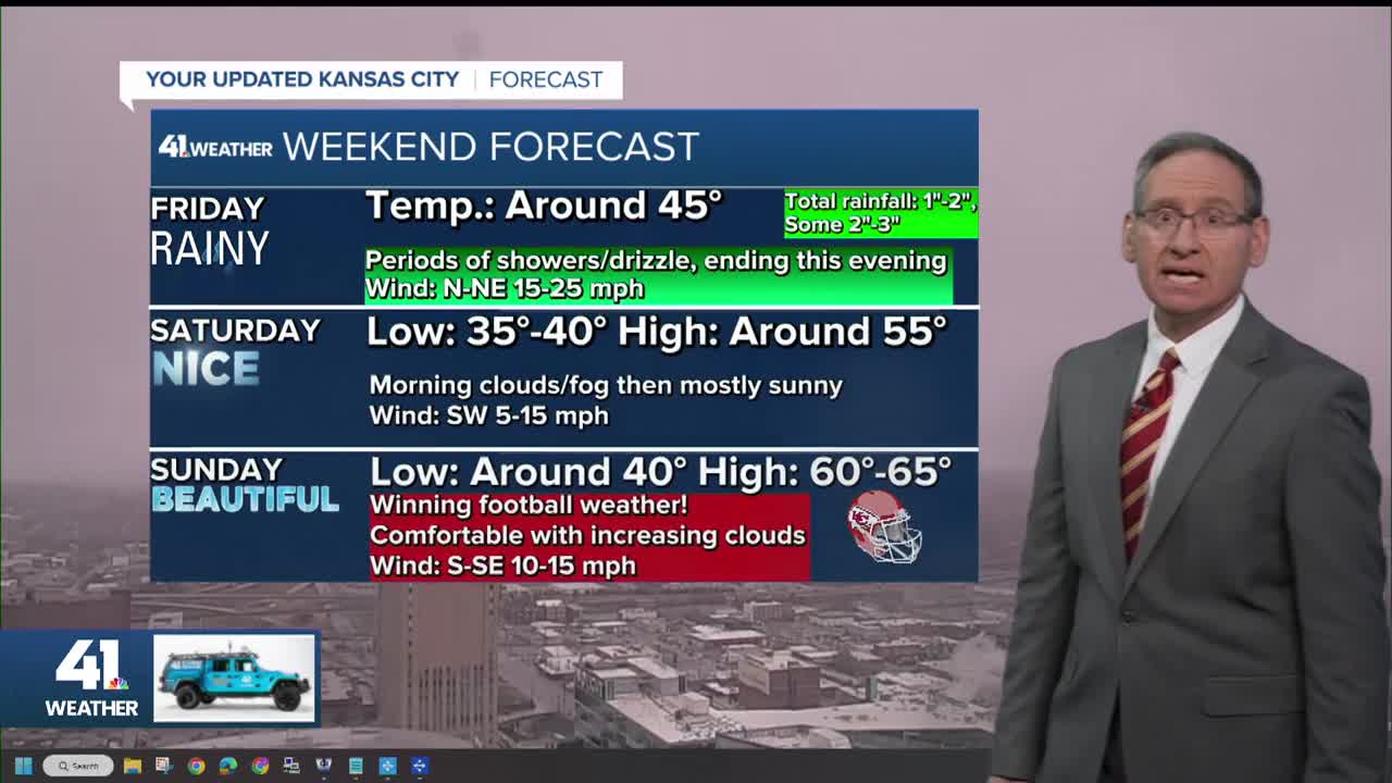 The heaviest rain will shift to northern Missouri and weaken as lighter showers/drizzle continue along the Interstate 70 corridor. Temperatures will drop to the upper 40s with a northeast wind at 10-20 mph.
