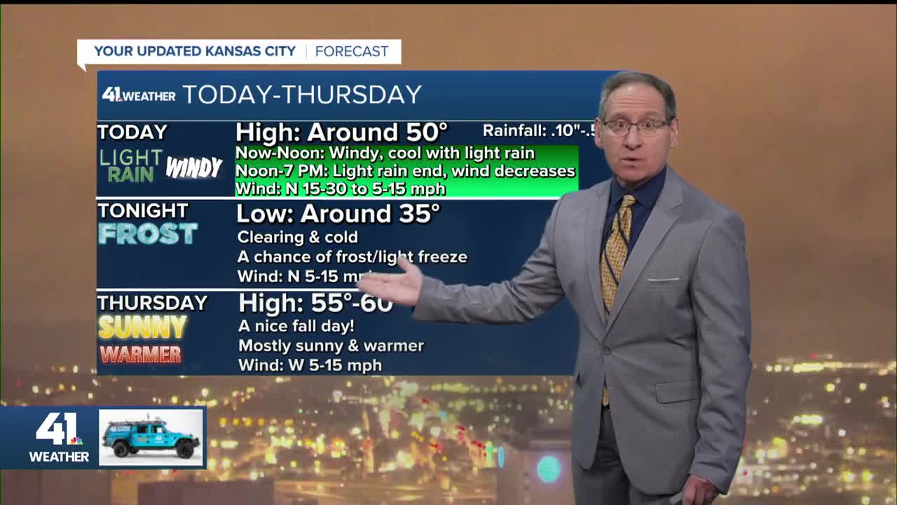 The rain ends by early afternoon, followed by frost tonight and a nice Halloween. It will be dry and cool for trick-or-treating.