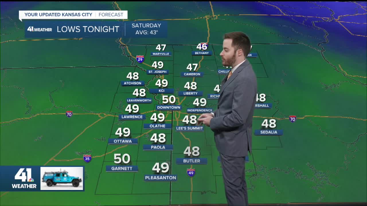 The weekend system will be moving into the Tennessee valley as we track a second system to our northwest. Right now, it looks like that system will move through Monday night-Tuesday. So, Monday will be mostly cloudy and cool (lows/highs in the 50s) with a slight chance of rain as it stands now. This means it should be mostly dry for the Chiefs game. There is still some uncertainty on the evolution of the second system, which means the forecast for the Chiefs game is still not set yet.