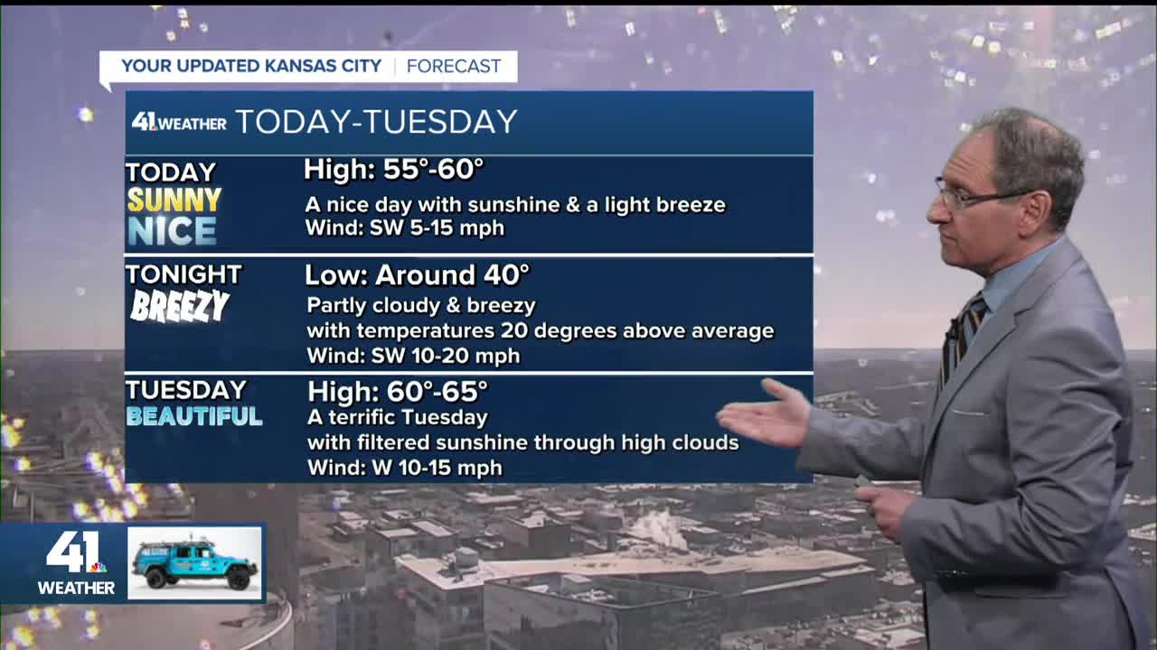 We will see abundant sunshine with highs in the upper 50s to low 60s, along with a southwest breeze 5-15 mph.
