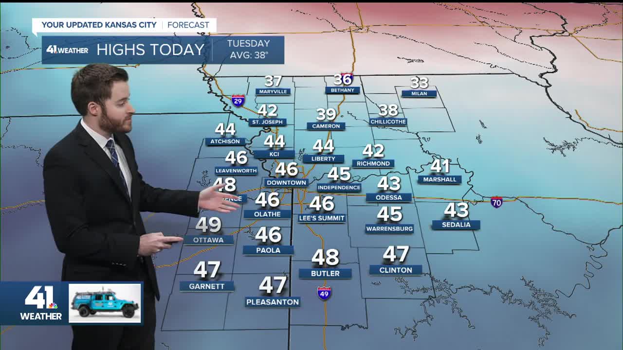 The Wednesday front will drop our highs to the upper 30s as we await the much more significant Arctic front timed for Thursday night.