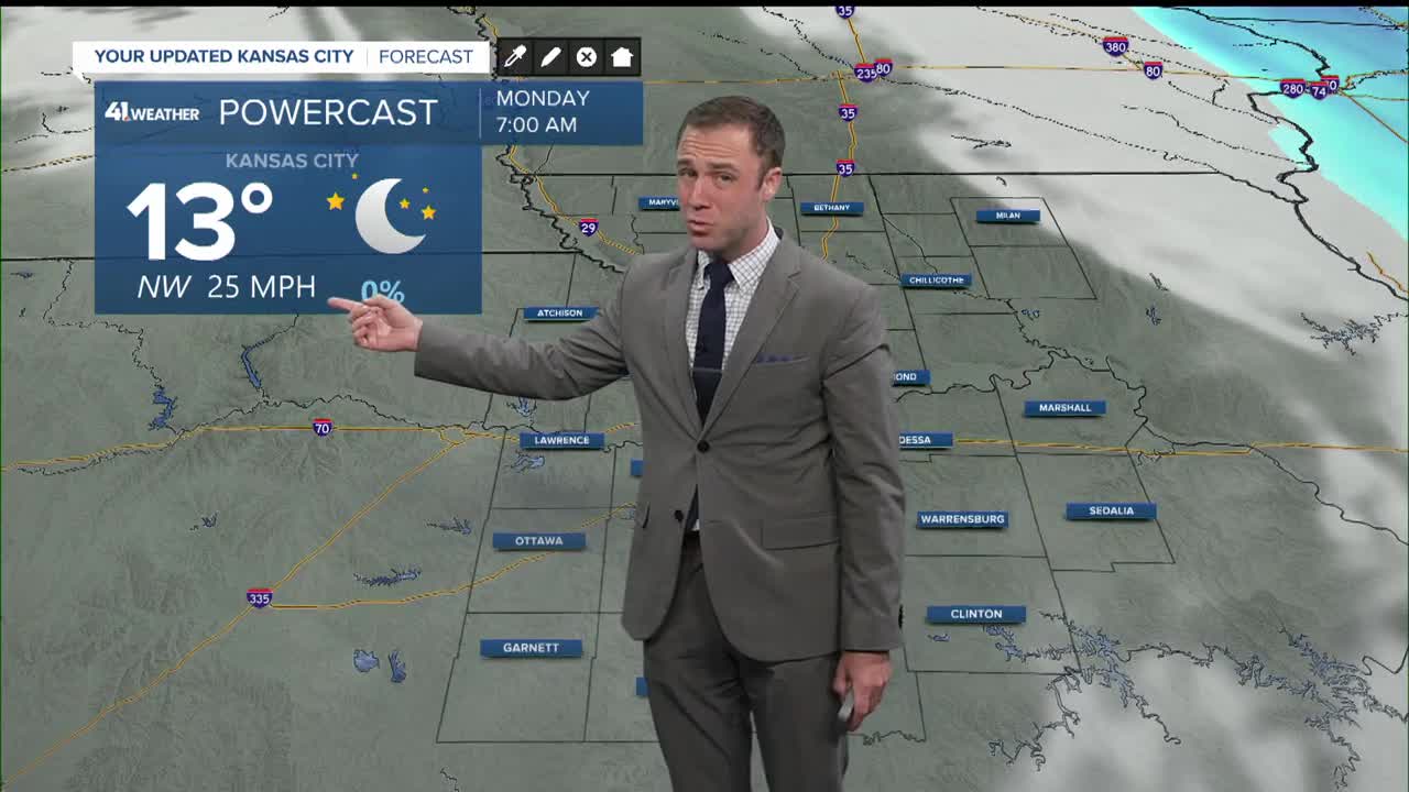 Monday: Sub-zero morning wind chills. Strongest wind gusts in the morning. Blustery and mostly sunny.