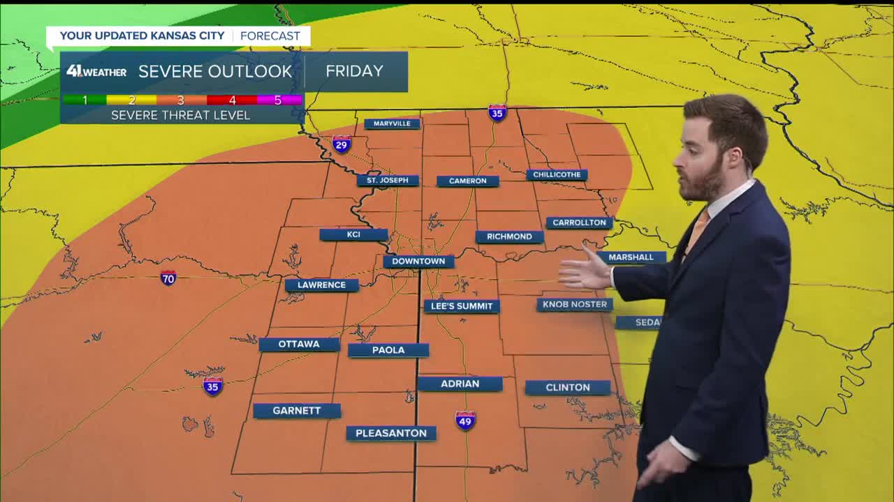 - Watching for the potential of storm clusters to move through Friday evening, which could be severe