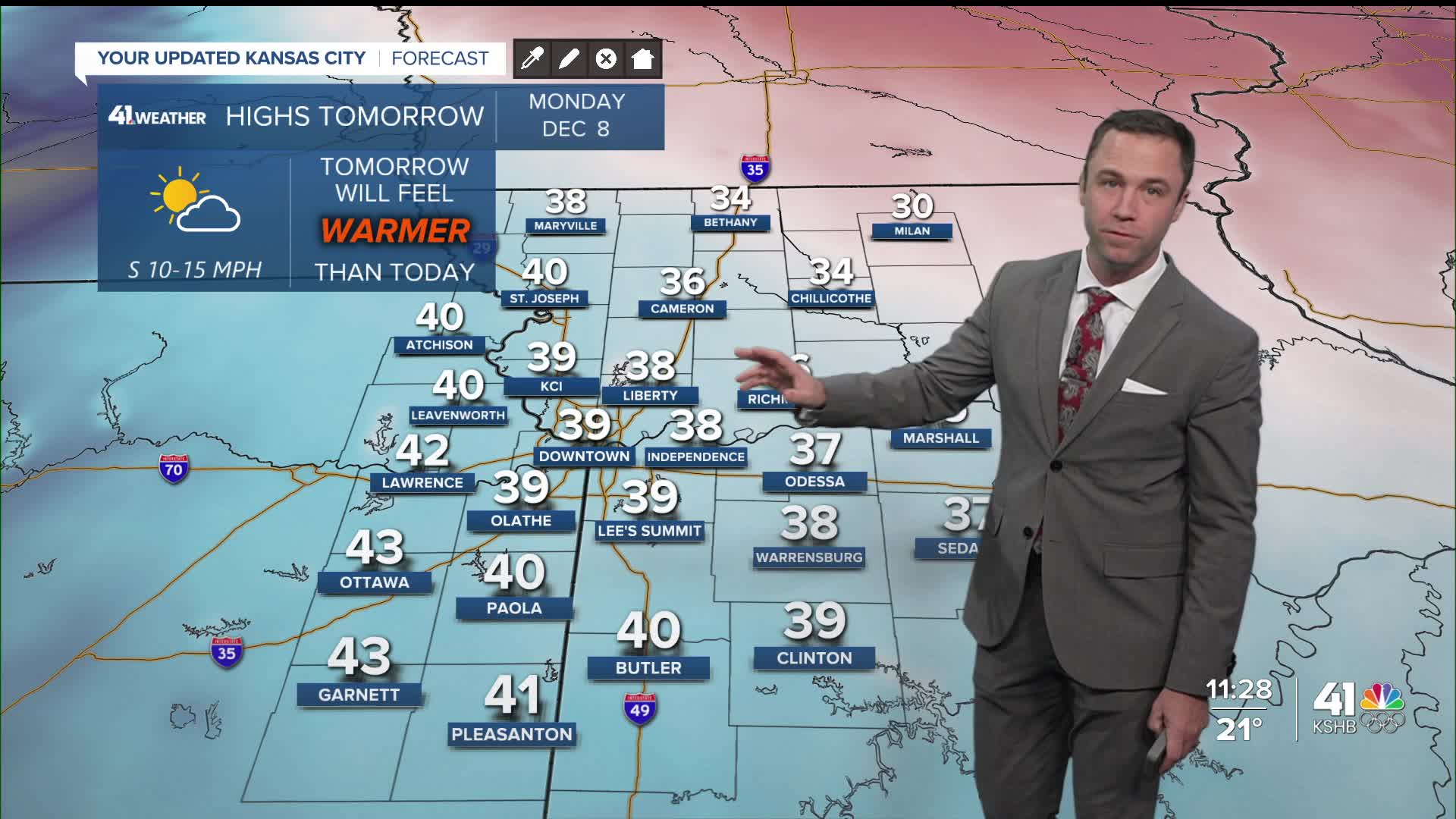 Tuesday: The warmest day of the week. Mostly sunny and breezy.