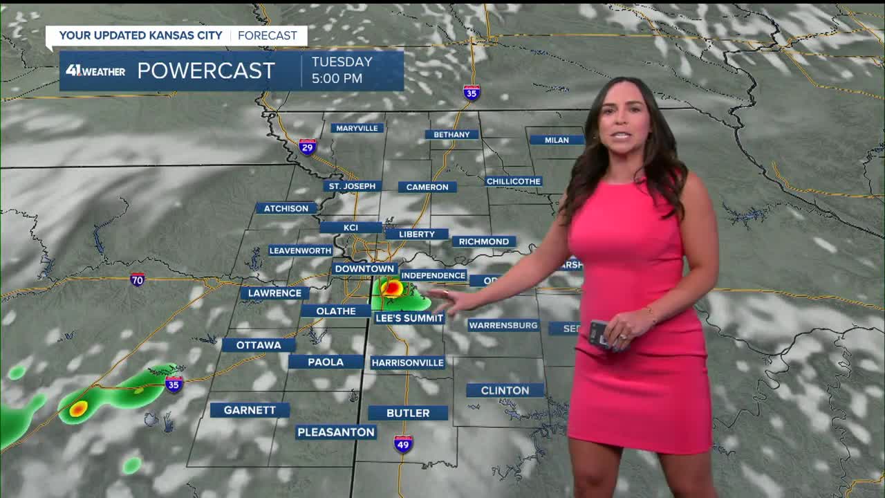 Tuesday: Scattered showers and thunderstorms this afternoon, mostly south and west of KC.