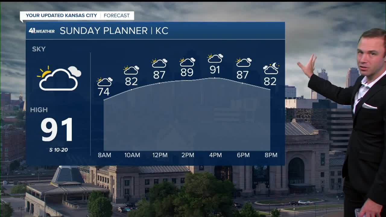 Sunday: Partly to mostly cloudy with the sun being able to shine through most of the clouds, still hot. Slight chance for an isolated shower or storm.