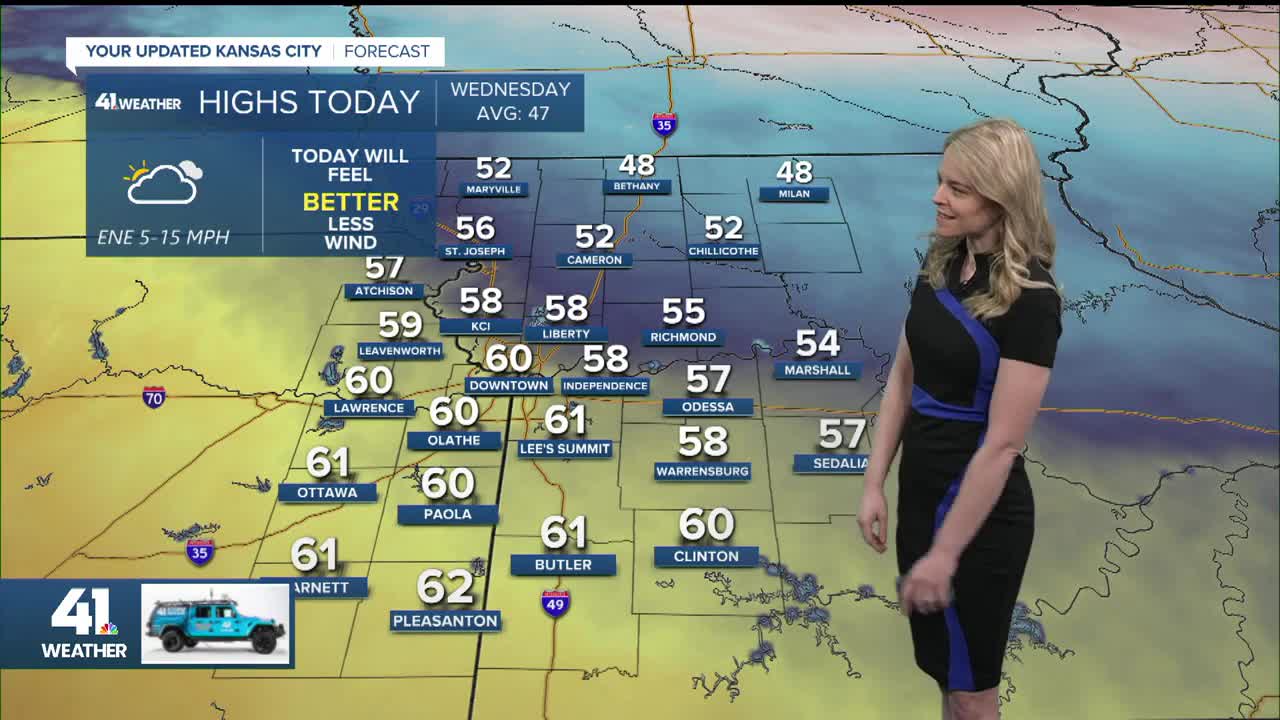 Wednesday: Partly to mostly cloudy with a light breeze. Rain arrives at night.
