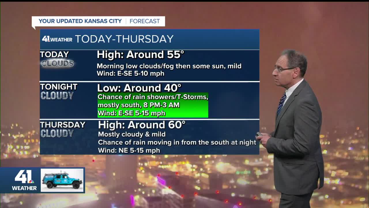 Tonight: Chance of showers and a few T-Storms 8 PM-3 AM, mostly south of KC
