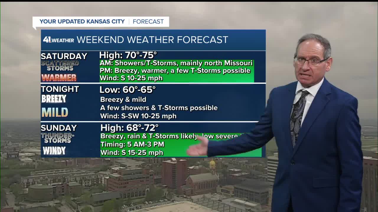 Saturday: Morning thunderstorms in northern Missouri. Isolated showers and storms will be possible in our area through the afternoon.