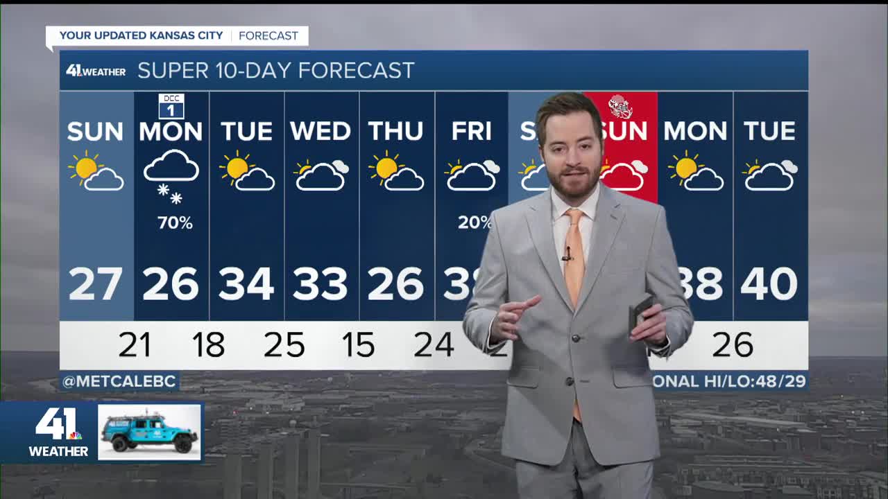 Monday: Chance to see our first snow with a dusting-2" possible.