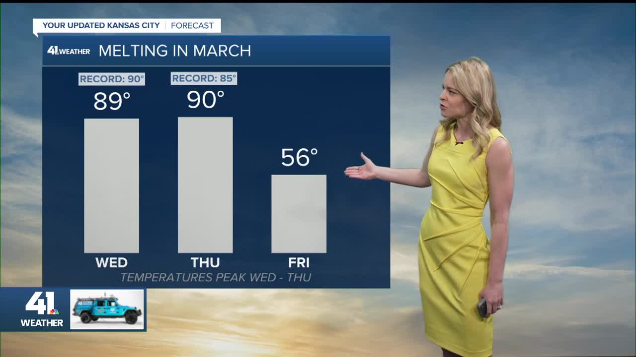 Thursday: Mostly sunny and windy with record highs likely ahead of a strong evening cold front. Showers and thunderstorms are possible Thursday night. Some storms could have strong wind and hail.